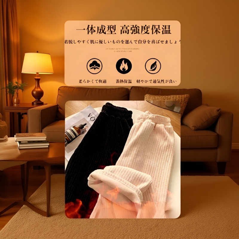 秋冬用裏起毛厚手ストレートパンツ、細見え万能カジュアル
